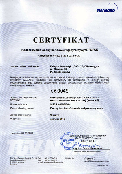 Certyfikat CE 0045